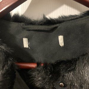 A black faux fur jacket with buttons closure and two pockets at front. Perfectly keeps you warm from cold weather. **Notice** There's no logo label, please see the tag proving for the H&M brand.