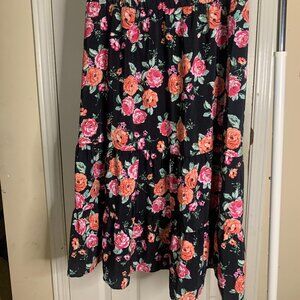 H&M Black Floral Midi Skirt