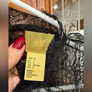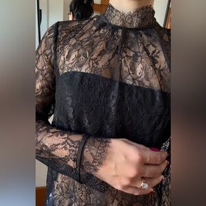 H&M Black Lace Blouse | Sheer Long Sleeve Top | Elegant & Versatile Small US 4