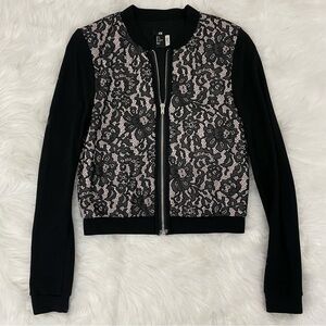 H&M Black Lace Bomber Jacket With Nude Base, Size Small