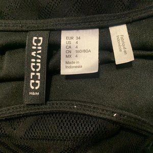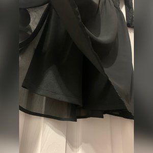 A black mini dress with chiffon skirt details. **Notice** There are some white stain as pictures shown.