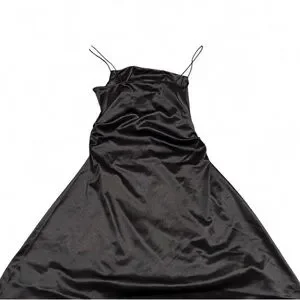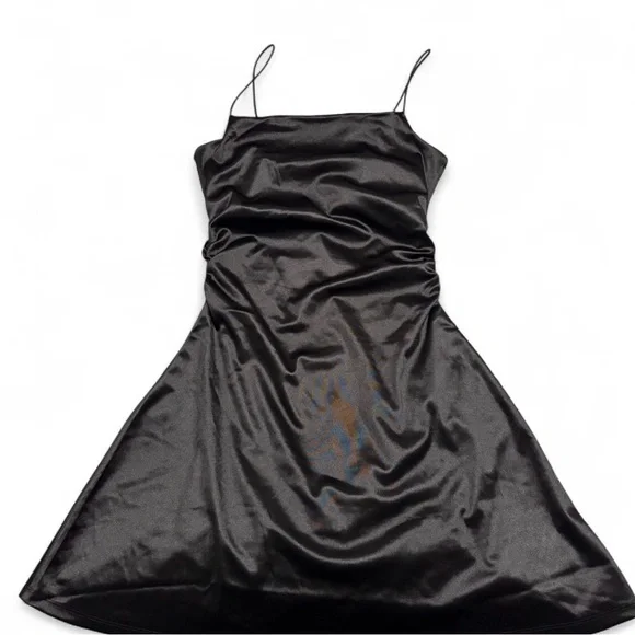 Elegant black mini dress. Sleek design with thin straps. Perfect for any occasion.