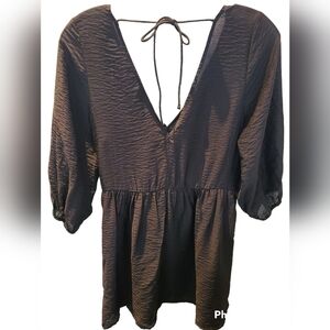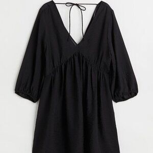 H&M Black Mini Dress V Neck 3/4 Sleeve Size XS NWT