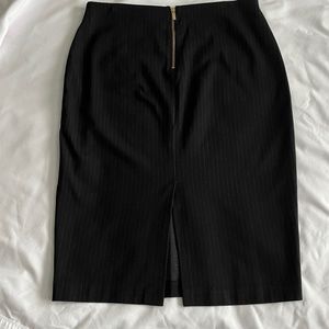 Pinstriped pencil skirt by H&M. Black and grey pinstripe. Nice feature of the gold exposed zipper at the back .