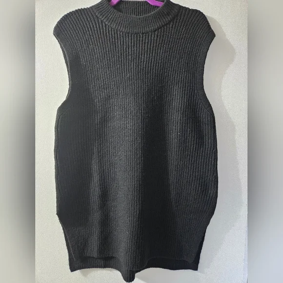 Chic black, oversized, ribbed vest with side slits. Ideal for layering.