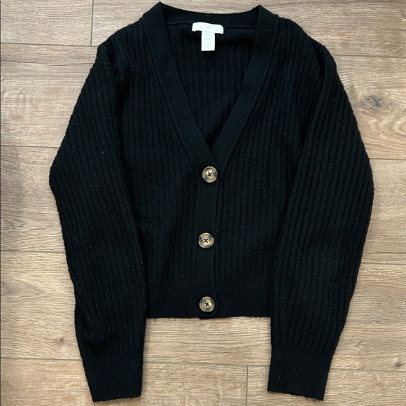 H&M Black Ribbed V-Neck Button-Front Cardigan
