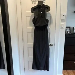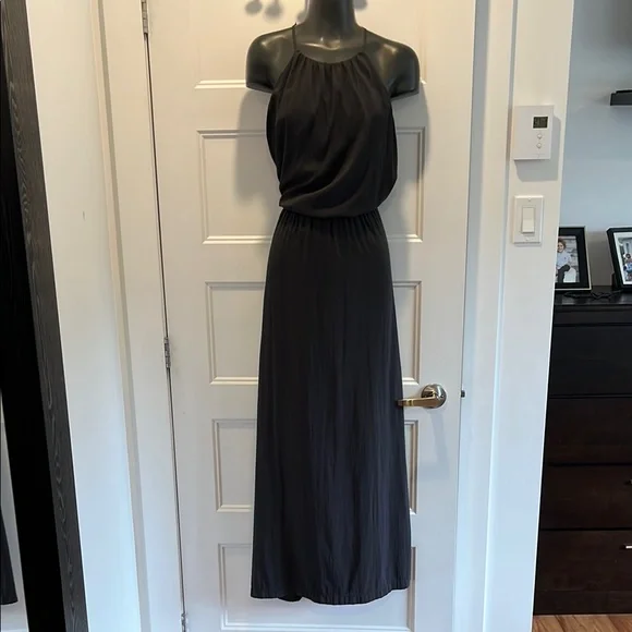 H&M Black Ruched Tie Front Halter Maxi Dress