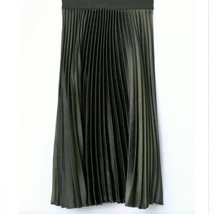 H&M Black Satin Plead Maryln Monroe Midi Flared Skirt sz 2-4