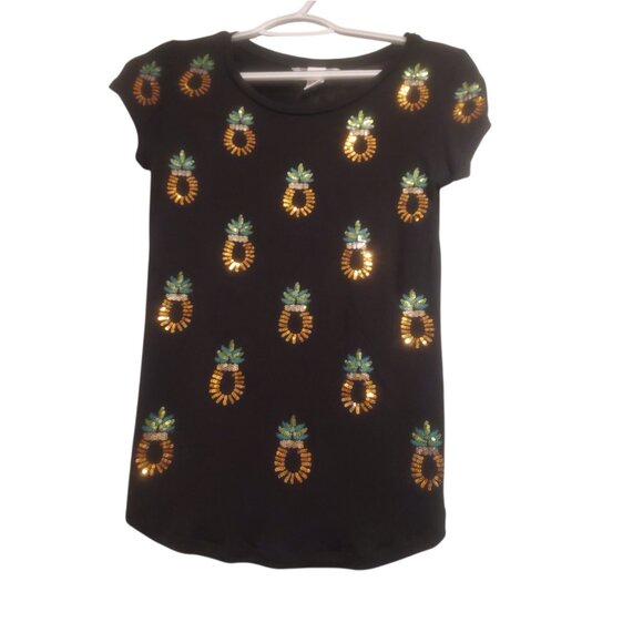 Black Top With Sequined Pineapples