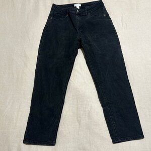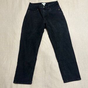 These H&M jeans in a classic black washed denim offer a versatile, easy-to-style look for casual or semi-formal wear. Lightly worn and in excellent condition, these jeans are cut in a comfortable fit with a slightly faded, vintage-inspired wash. Perfect for pairing with sweaters, tees, or blouses for any season. Size 10.