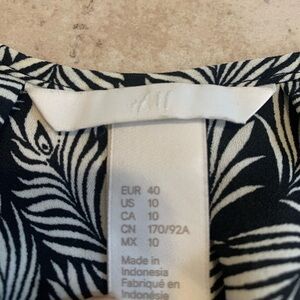 This stylish blouse from H&M features a striking black and white feather print. The flowy fabric and comfortable fit make it perfect for everyday wear. It's a US size 10.