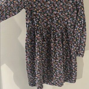 This casual sundress from H&M features a charming black base adorned with delicate pink floral prints. Designed with a crew neck and bishop long sleeves, it offers a relaxed yet stylish silhouette perfect for everyday wear.