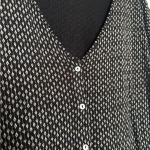 Stylish midi dress with a patterned design. Features a flattering V-neck and button details. Ideal for versatile wear.