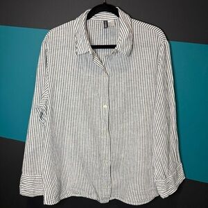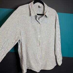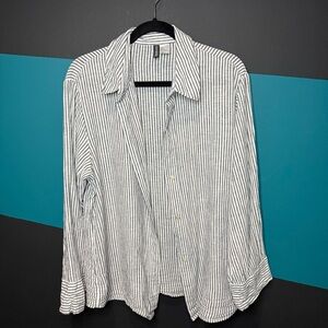 H&M Black and White Relaxed Button Down Shirt cotton linen