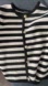 Stylish striped cardigan. Features black and white pattern. Button-up front. Long sleeves with button details.