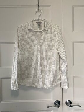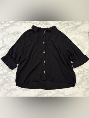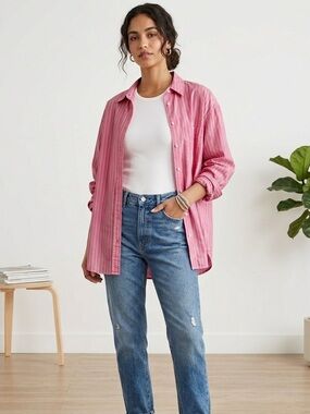 Stylish black and white stripes. Button-down design. Ideal for casual outings.