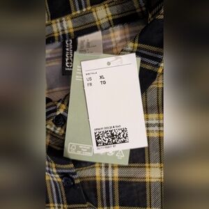 Stylish plaid blouse Features button closure. Perfect for layering.