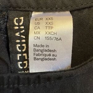 H&M Black sleeveless muscle crop tee top blouse pull strings zip back size XXS