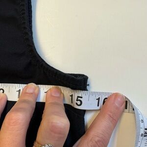 Description: Black sleeveless muscle crop tee top blouse pull strings, zip back.