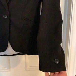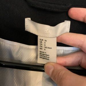 Super cute black H&M blazer with white lining and two faux pockets. Size 6 but fits small (fits more like a size 4). Excellent condition, no visible flaws.