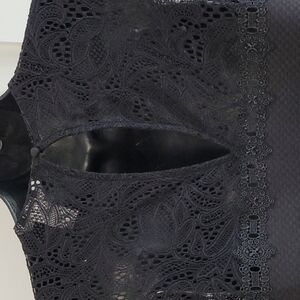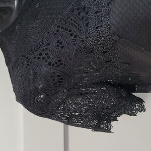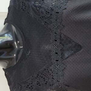 This top Is the perfect combination of sexy and sophisticated.. It has a fitted bodice made in a thick, slightly textured material and from the upper chest onward is a beautiful lace.