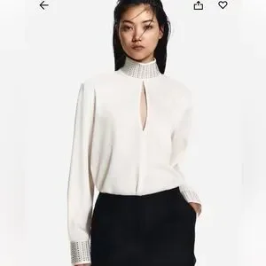 H&M Blouse - stud detailing - back zipper closure - lightweight - love and bought in another size - fits large - material and description in pictures - 27” inches pit to pit - 26” inches length - NWT