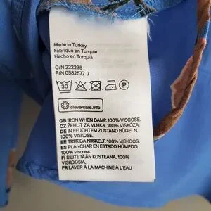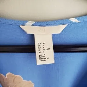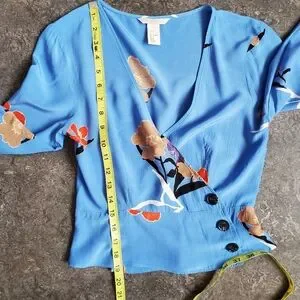 H&M Blue Floral Wrap Cropped Long Sleeve Button Front Blouse Sz 4/Small