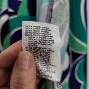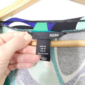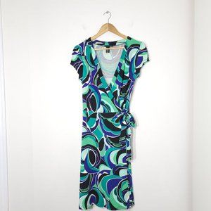 H&M Blue, Green & White Abstract Print Faux Wrap Short Sleeve Dress Woman Sz 12