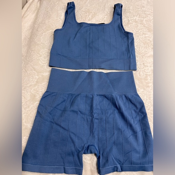 Stylish ribbed crop top and shorts set. Perfect for casual wear. Comfortable and trendy.