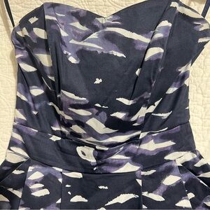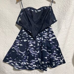 H&M Blue & White Strapless Fit & Flare Mini Dress, Size 4