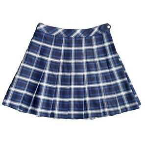 H&M Blue/White Plaid Short Pleated High Waisted Skirt - Size 2