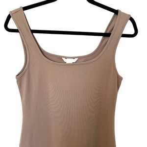 Calf-length, fitted, sleeveless dress in a soft cotton jersey with a low cut neckline at the front and back