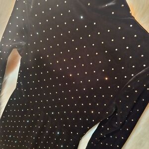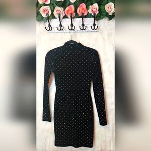 Make a dazzling impression in this sleek, like-new black mini dress from H&M! The luxurious, velvet-like fabric hugs your curves in all the right places, while intricate jewels sparkle and glitter across the design, adding a touch of glamour. With its long sleeves and bodycon fit, this dress is perfect for a night out or special occasion. Pair with heels and statement accessories to amplify the glamour, or keep it simple for a sophisticated, eye-catching look.