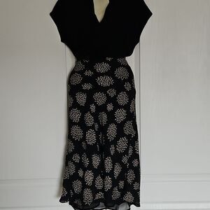 H&M Bundle 2-Piece Top & Floral Print Midi Skirt XS Black & Beige