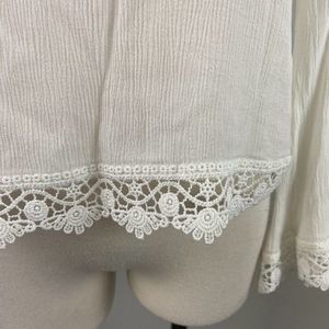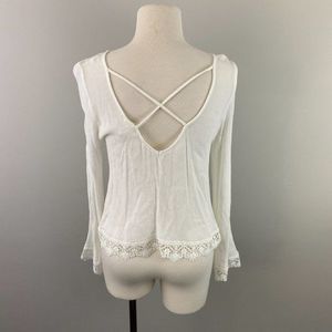 H&M COACHELLA White Open Back Long Sleeve Crochet Shirt