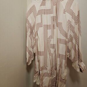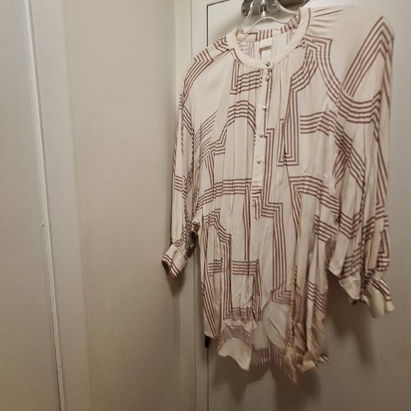 Three quater sleeves cotton top,size 12,free fit.color cream and wine red.