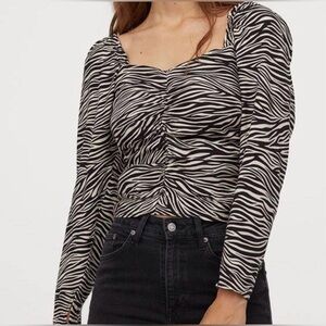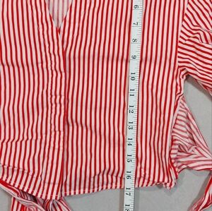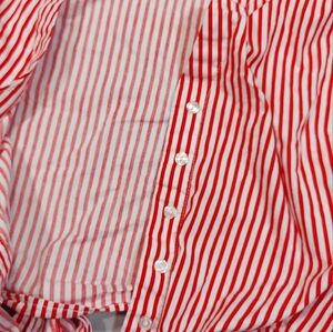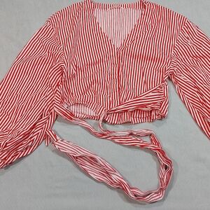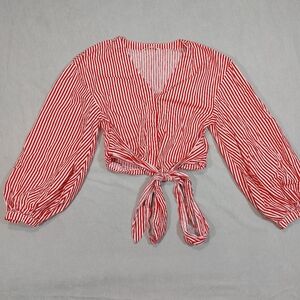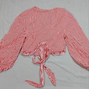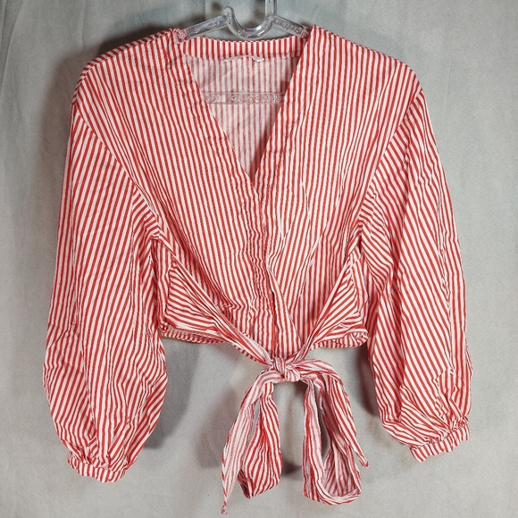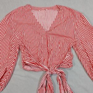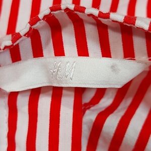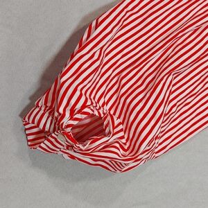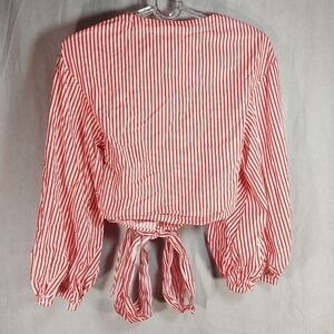 H&M Candy Stripe Red White Cotton Tie Up Long Sleeve Blouse Top, Medium