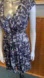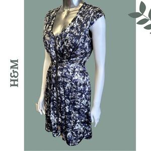 H&M Cap Sleeve A-Line Zipper Front Dress Pleated Shoulder Print Navy Grey Size 4