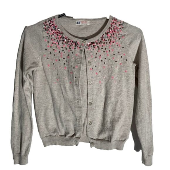 Stay cozy and stylish with this H&M cardigan in oatmeal. The cardigan features beautiful sequins that add a touch of glam to the overall design. Perfect for girls in size 8, this cardigan is made from high-quality materials ensuring durability and comfort. This beige cardigan is perfect for any occasion, be it a party or a casual day out. The cardigan is a great addition to any wardrobe and is sure to become a favorite. Don't miss out on this stylish and comfortable cardigan from H&M.