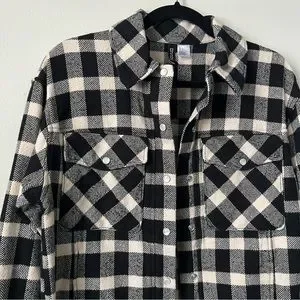 Brand: H&M Condition: Worn once Size: S Colour: Cream and black Details: Checked shacket