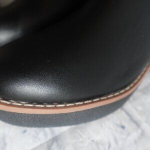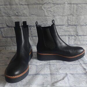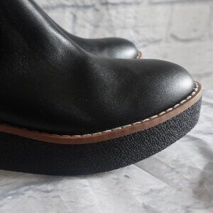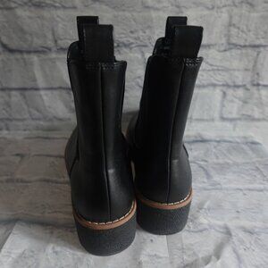 Never worn, only stored. Chelsea boots in faux leather with loops on leg section and elasticized side panels. Sole thickness 1 1/2 in. Art. No.:0904415001. Small imperfections from storage as shown in photos and reflected in price.