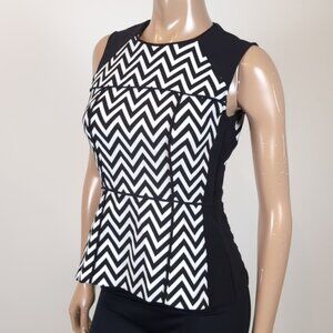 H&M Chevron Print Sleeveless Peplum Top Ponte Fitted Stretch Black White Party