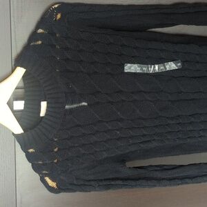H&M Classic Black Crewneck Cable Knit Sweater Angora Cotton Blend - XS NWT