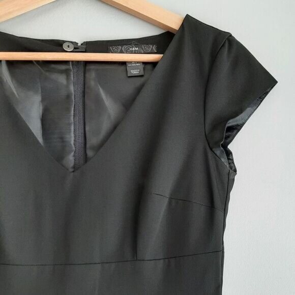 H&M | Classic Defined Waist V-Neck Sheath Dress Mini Black Sz 4