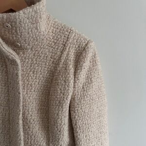 EUC women's ecru coat in size 4 (women's size small). Gold zipper details and high collar Coat length 35 inches Length of sleeves 24 inches