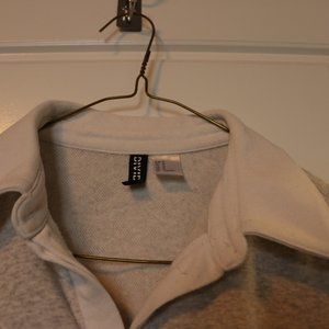 Button-up collar detailing, Long Sleeve. Lightweight sweatshirt material.