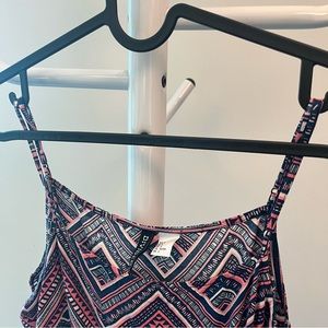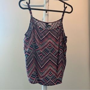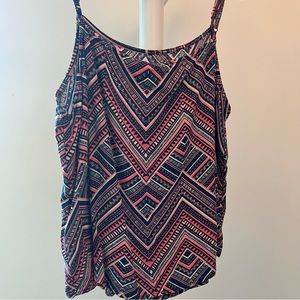Trendy tank top with a fun Aztec pattern in link, blue, and purple. Flowy and airy for comfortable fit
