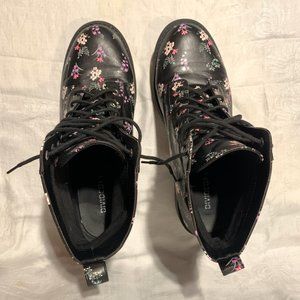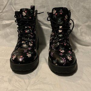 H&M Combat Boots - Black and Floral Print (Women's US 9.5, EUR 41)