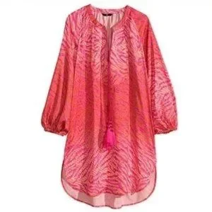 H&M Conscious Hot Pink Tassel Tunic Top Sz 4