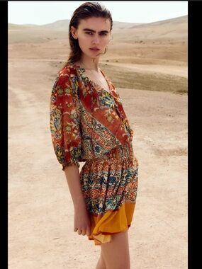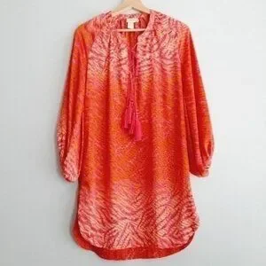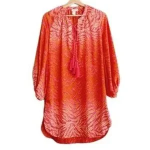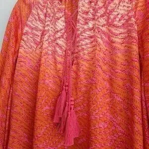 • Peasant sleeve H&M conscious collection tunic blouse with front tassel ties in hot pink and orange. Perfect to wear as a blouse or beach cover-up.